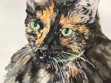 “Tortoiseshell Cat” cards, copy of Watercolor. Pkge includes 4 cards & envelopes . Inside is blank